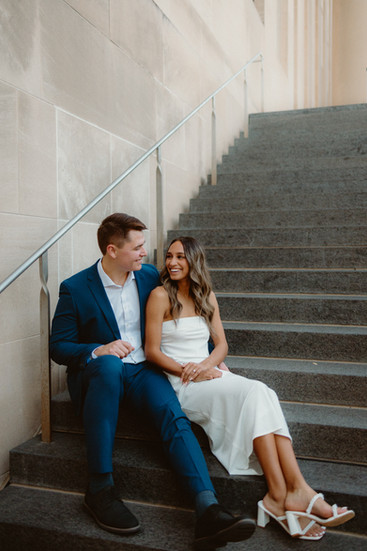 If you’re dreaming of a classy, elegant engagement photo session, this is the place to go. The Nelson-Atkins Museum of Art offers countless stunning photo opportunities. The iconic pillars paired with the reflection pool create a timeless and sophisticated look, making it perfect for couples going for this feel.